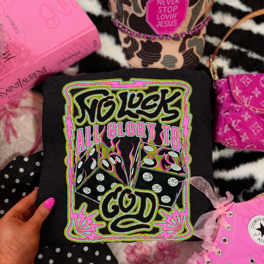 No Luck All Glory to God Sublimation Design PNG Digital Download High Roller Lightening Faith Neon