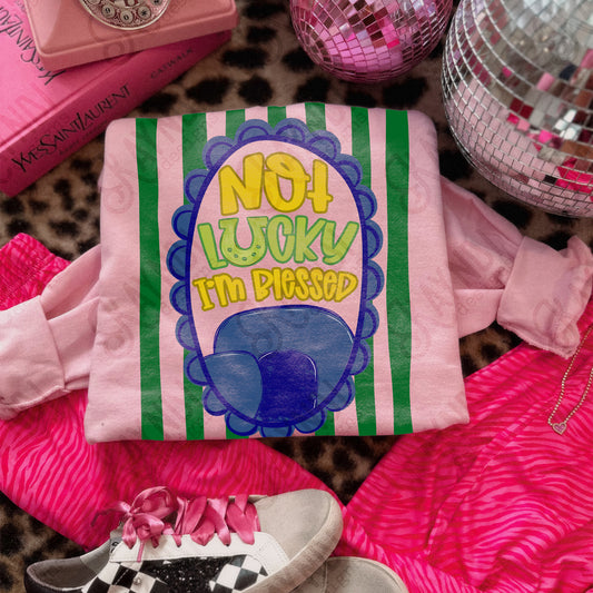 Not Lucky I'm Blessed Sublimation Design PNG Digital Download Blue Green Stripes Faith Horseshoe