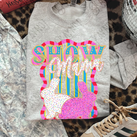 Show Mama Rabbit Sublimation Design PNG Digital Download Pink Blue Stripe