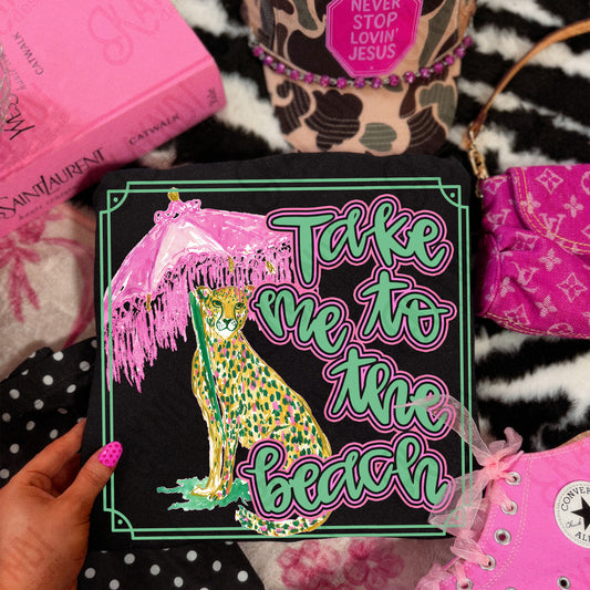 Take me to the Beach Sublimation Design PNG Digital Download Preppy Leopard Pink Green Gold