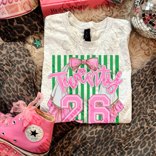 Twenty 26 Stole Sublimation Design PNG Digital Download Graduation Sash 2026 Green Stripes Preppy Senior