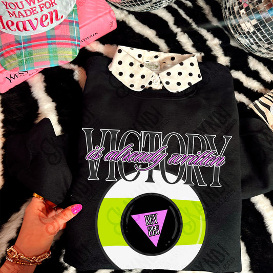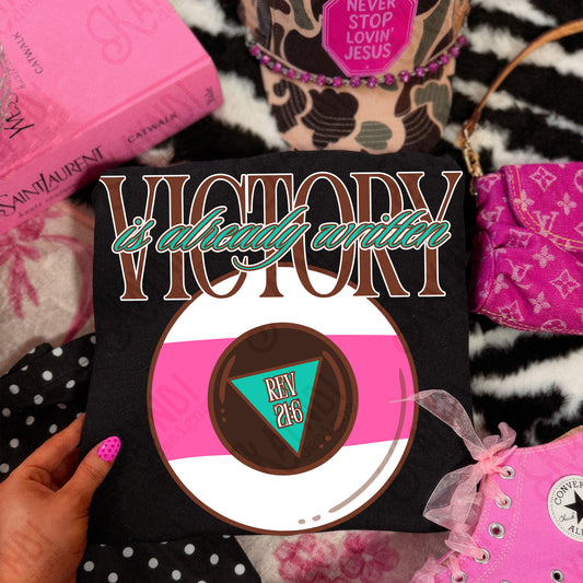 Victory is Already Written Pink Sublimation Design PNG Digital Download Magic 8 Ball Faith Rev 21:6