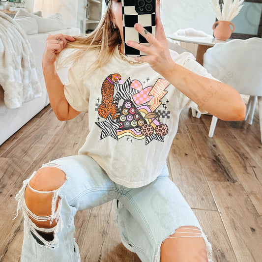 Wild Sticker Pastel Sublimation Design PNG Digital Download Heart Lightning Zebra Cheetah Leopard Billiards Checker