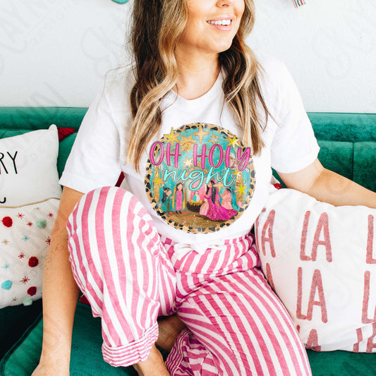 Oh Holy Night Sublimation Design PNG Digital Download Nativity Faith Jesus Pink