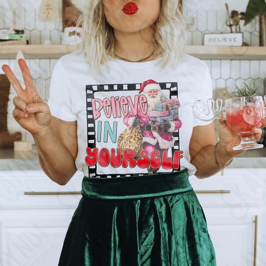 Believe in Yourself Sublimation Design PNG Digital Download Pink Santa Christmas Cheetah