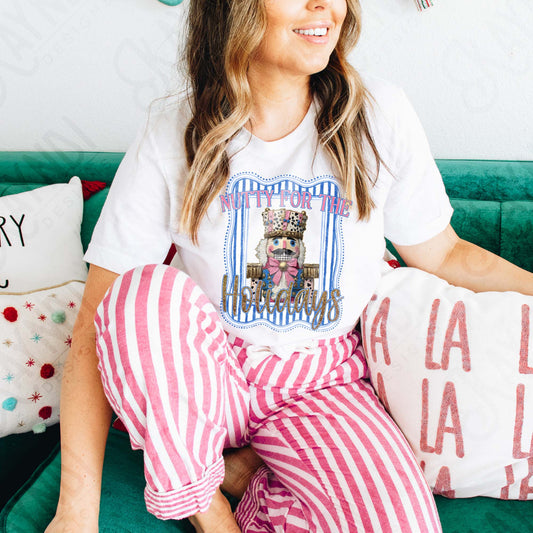 Nutty for the Holidays Sublimation Design PNG Digital Download Cheetah Nutcraker Pink Blue