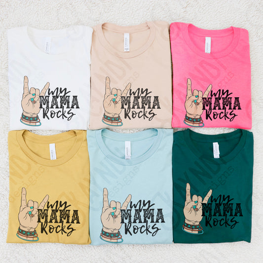 My Mama Rocks Sublimation Design PNG Digital Download Printable Rock Hand Sign Rocker Mom Mamma Stud Glitter Leopard Turquoise