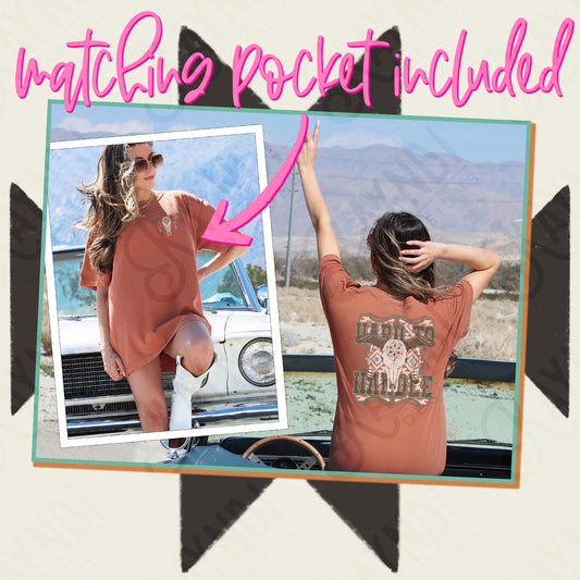 Hippies and Cowboys Sublimation Design PNG Digital Download Printable Western Bull Skull Pocket Design
