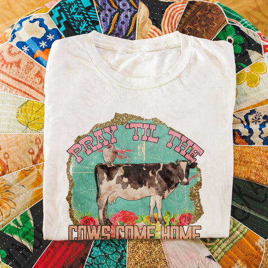 Pray Til The Cows Come Home Sublimation Design PNG Digital Download Printable Cow Chicken Small Town Farm Country Southern Mama Retro