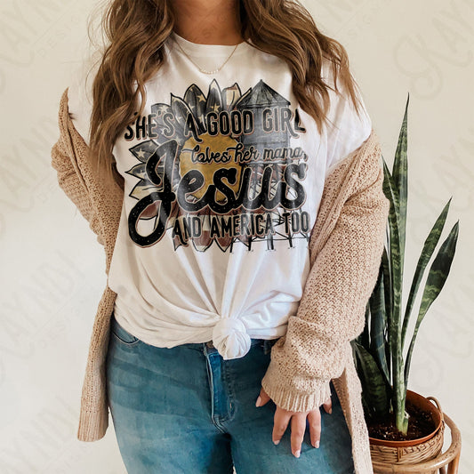 She's a Good Girl loves her mama, Jesus and America too Sublimation Design PNG Digital Download Printable