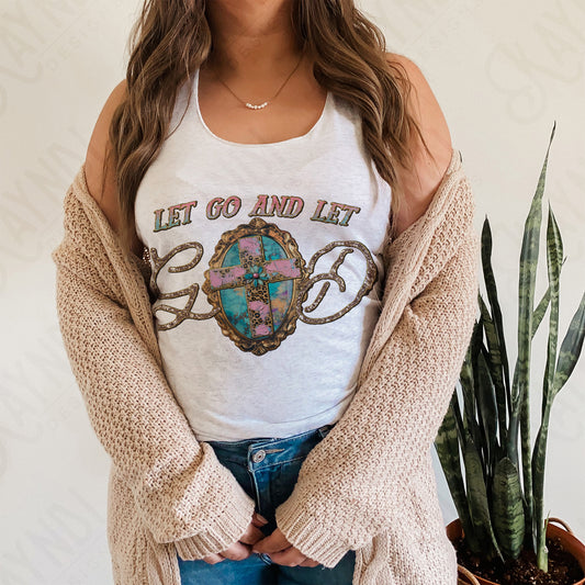 Let Go and Let God Sublimation Design PNG Digital Download Printable Faith Western Vintage