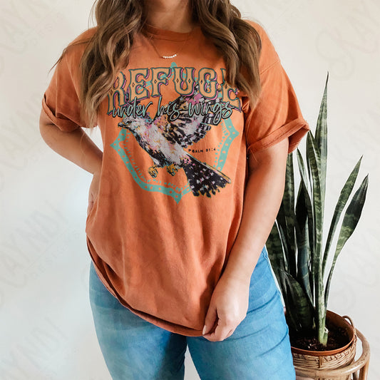 Refuge Under His Wings Sublimation Design PNG Digital Download Printable Faith Hawk Vintage