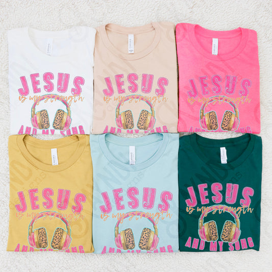 Jesus is My Strength and My Song Headphones Sublimation Design PNG Digital Download Printable Pink Cheetah Music