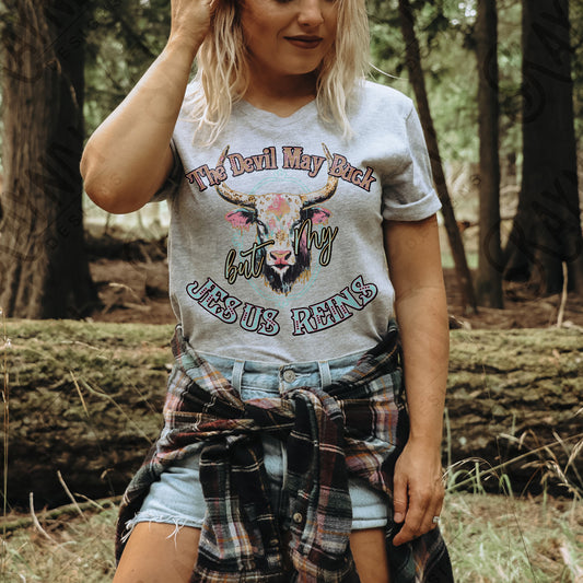 Jesus Reins Sublimation Design PNG Digital Download Printable Cow Buck Devil Faith