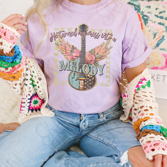 Mess into a Melody Sublimation Design PNG Digital Download Printable Music Guitar Flowers Wings