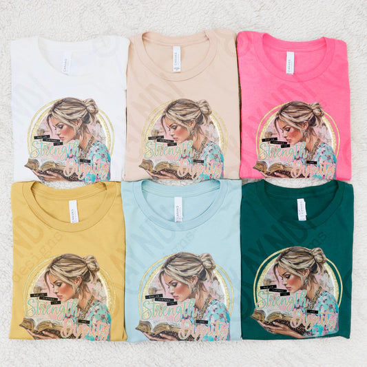 She is Clothed in Strength Sublimation Design PNG Digital Download Printable Faith Christian Bible
