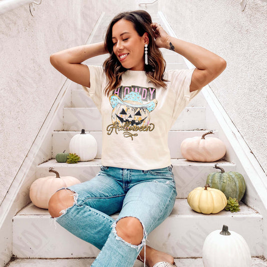 Howdy Halloween Sublimation Design PNG Digital Download Cheetah Pumpkin Cowboy