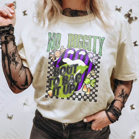 No Diggity Bout to Bag it Up Design PNG Digital Download Printable Halloween Trick or Treat Design Grunge Rock Band