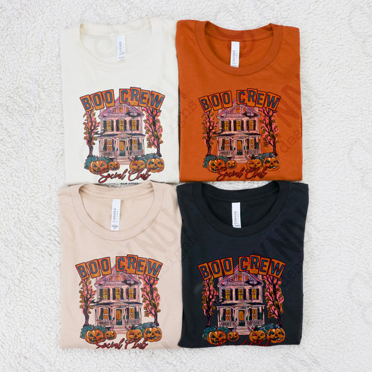 Boo Crew Colorful Sublimation Design PNG Digital Download Printable Halloween Haunted House Bat Pumpkins