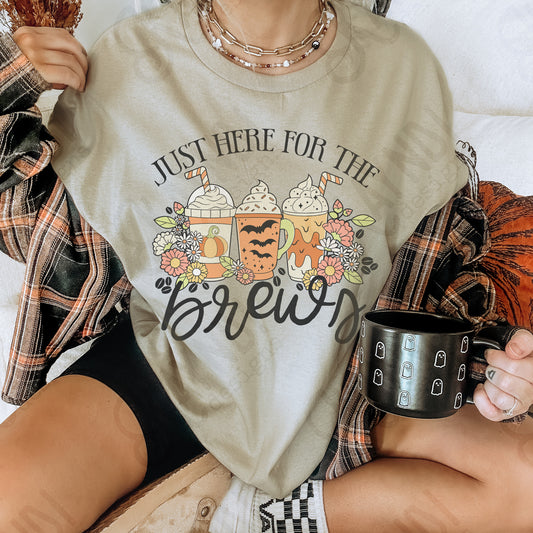 Just Here for the Brews Sublimation Design PNG Digital Download Printable Halloween Coffee Frappe Flowers Bats