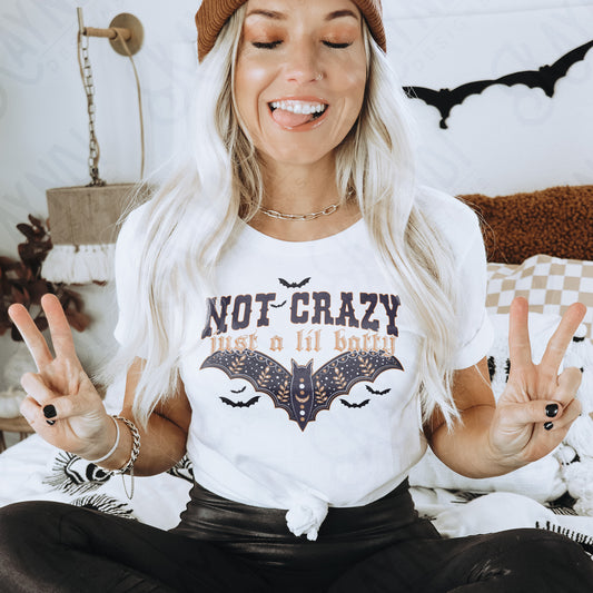 Not Crazy Just a Little Batty Sublimation Design PNG Digital Download Printable Halloween Bats Crazy