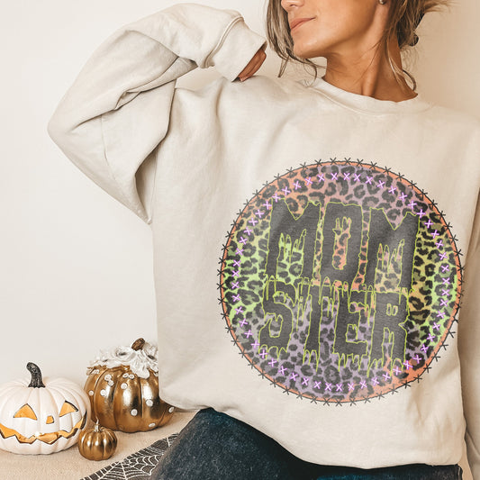 Momster Leopard Sublimation Design PNG Digital Download Printable Monster Mom Cheetah Halloween Fall Mama Zombie Creepy Spooky Ghoul
