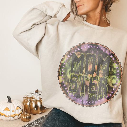 Momster Tiedye Sublimation Design PNG Digital Download Printable Monster Mom Tie dye Halloween Fall Mama Zombie Creepy Spooky Ghoul