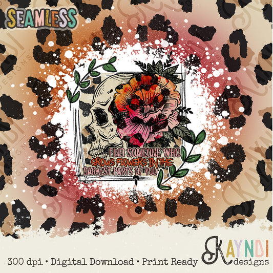 Find Someone Who Grows Flowers in the Darkest Parts of You Seamless Tumbler Sublimation Design PNG Digital Download Printable Leopard Skull