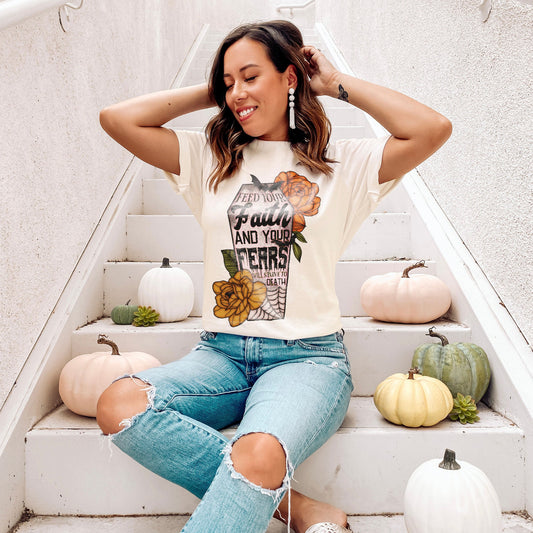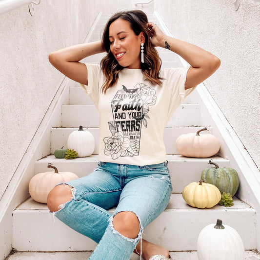Feed Your Faith and Your Fears Will Starve To Death Sublimation Design PNG Digital Download Printable Christian Halloween Coffin Bats Floral
