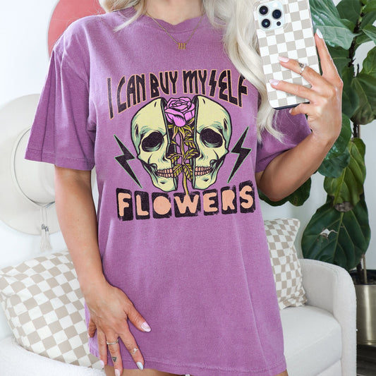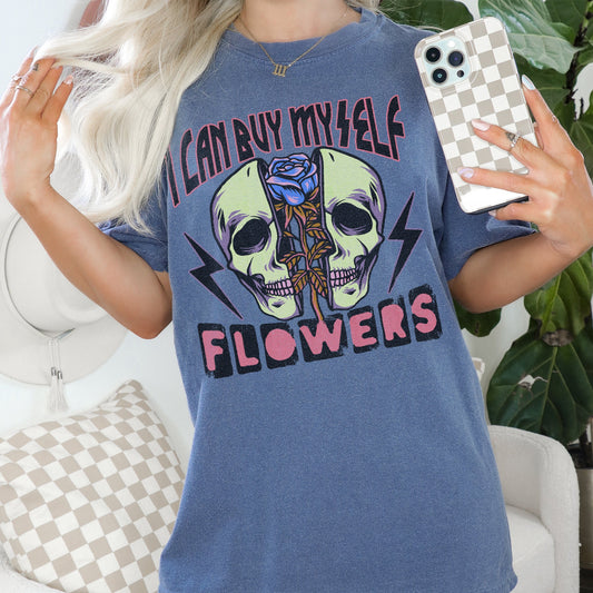 I Can Buy Myself Flowers Sublimation Design PNG Digital Download Printable 2 Neon Grunge Skull Rose Lightning Bolt Skellie Skull Skeleton