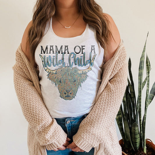 Mama of a Wild Child Cow Sublimation Design PNG Digital Download Printable Highland Cattle Cow Print Kid Boy Cowboy Baby Blue Country Mini