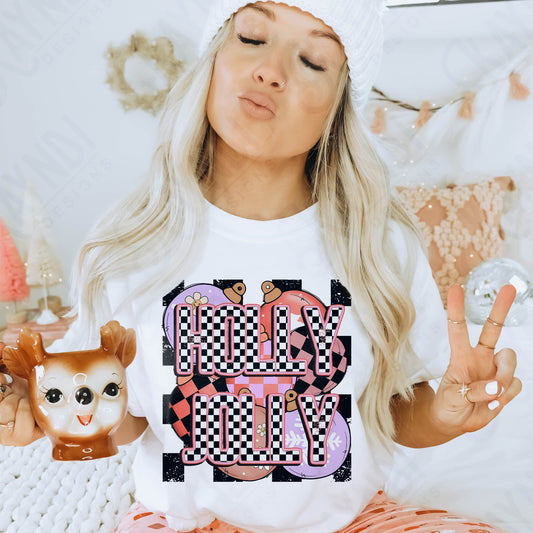 Holly Jolly Checker Sublimation Design PNG Digital Download Printable Christmas Balls Retro Groovy Bright Pink Christmas Winter Ornaments