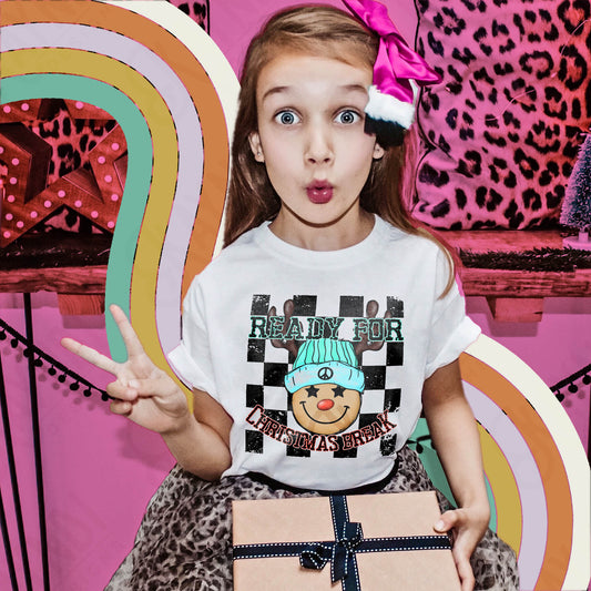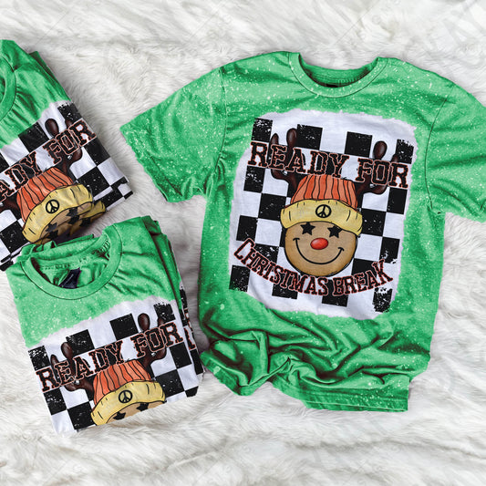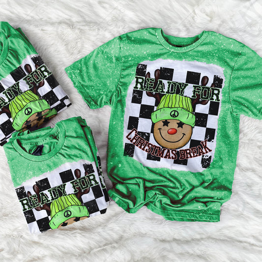 Ready for Christmas Break Reindeer Green Beanie Hat Sublimation Design PNG Digital Download Printable Kids Christmas School Teacher Checker