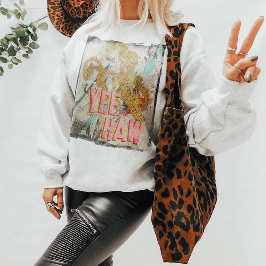 Yee Haw Sublimation Design PNG Digital Download Printable Rodeo Saddle Bronc Cowgirl Cowboy Western Neon Retro Horse Country Boho Southern