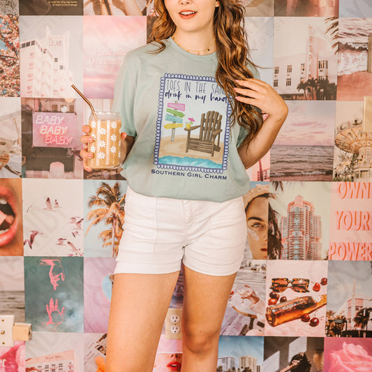 Southern Girl Charm Toes in the Sand Drink in my Hand Sublimation Design PNG Digital Download Printable Southern Prep Preppy Girly Beach