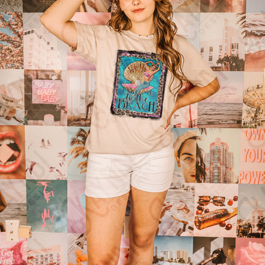 Take me to the beach mermaid Sublimation Design PNG Digital Download Printable Leopard Polka dots Summer Sea Shell Vintage Girl Peal