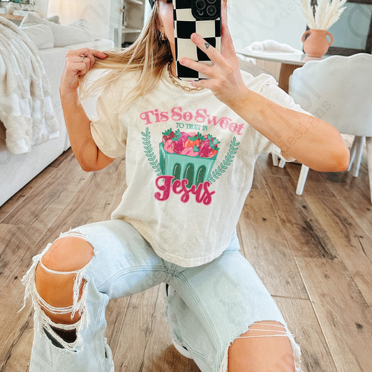 Tis So Sweet to Trust In Jesus Sublimation Design PNG Digital Download Printable Cute Faith Strawberries