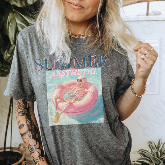 Summer Aesthetic Sublimation Design PNG Digital Download Printable Skeleton Floating Pool
