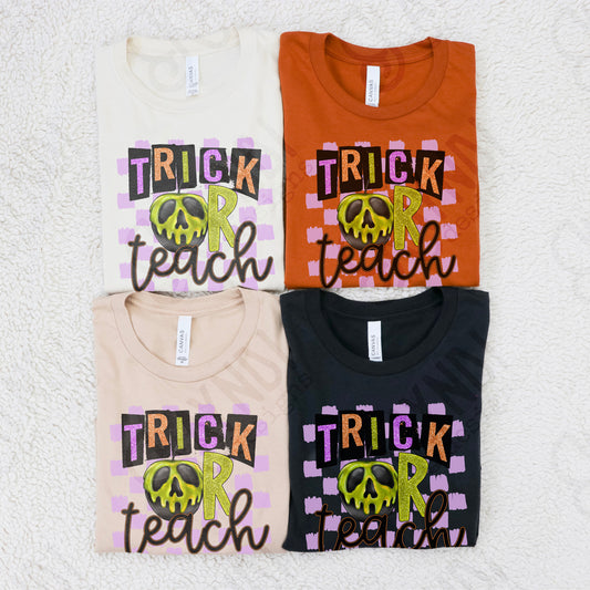 Trick or Teach Sublimation Design PNG Digital Download Printable Flowers Halloween