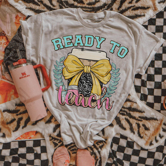 Ready to Teach Sublimation Design PNG Digital Download Printable School Supplies Teacher Elementary School Coffee Bow Coquette