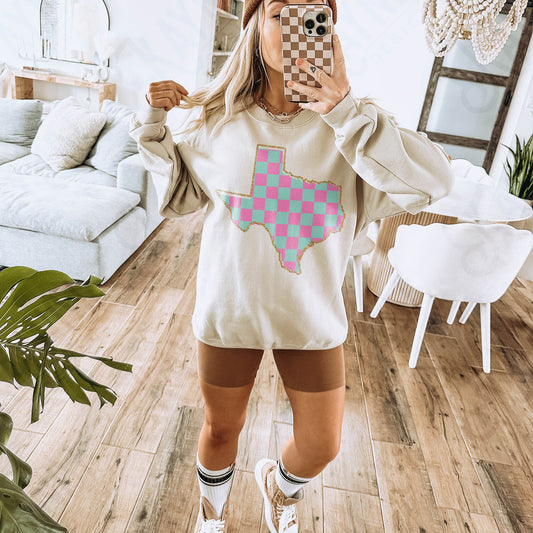 Check Pink Teal Texas Sublimation PNG, Digital Download, Printable Western, State-Based Art, Vibrant, DIY Craft Design