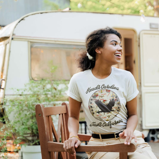 Heads Carolina Tails California Sublimation Design PNG Digital Download Printable 80s 90s Country Travel Adventure Wanderlust Retro Quote