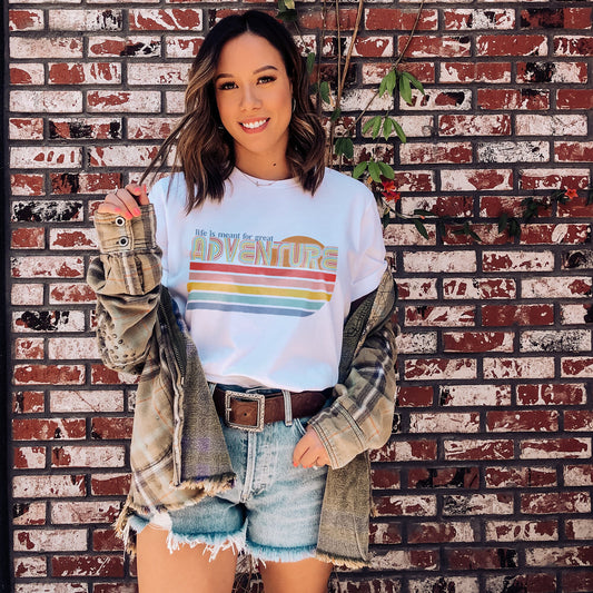 Life is Meant for Great Adventure Sublimation Design PNG Digital Download Printable Light Retro Groovy Wanderlust 70s 90s Road Trip Wanderer