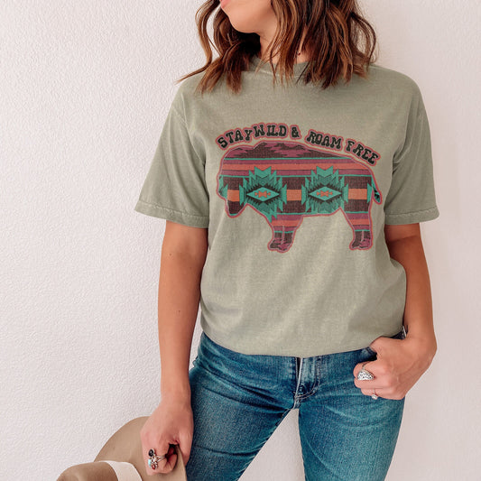 Stay Wild & Roam Free Buffalo Sublimation Design PNG Digital Download Printable Aztec Tribal Western Country Cowboy Rodeo Wanderlust