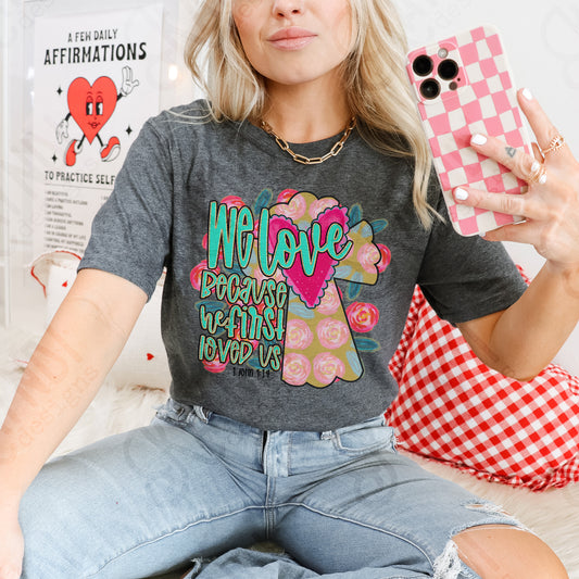 We Loved Because he First Loved Us Sublimation Design PNG Digital Download Printable Faith Valentines Bible Verse