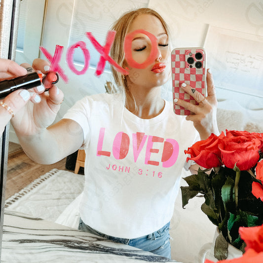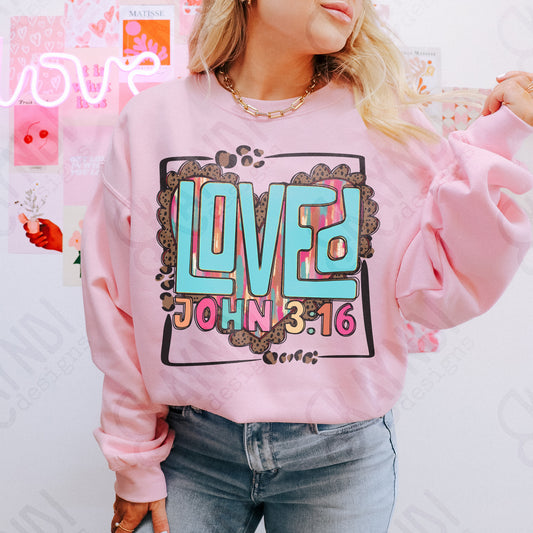 Loved John 3:16 Sublimation Design PNG Digital Download Printable Faith Valentines Bible Verse