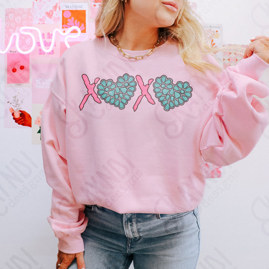 XOXO Sublimation Design PNG Digital Download Printable Flowers Turquoise Valentines