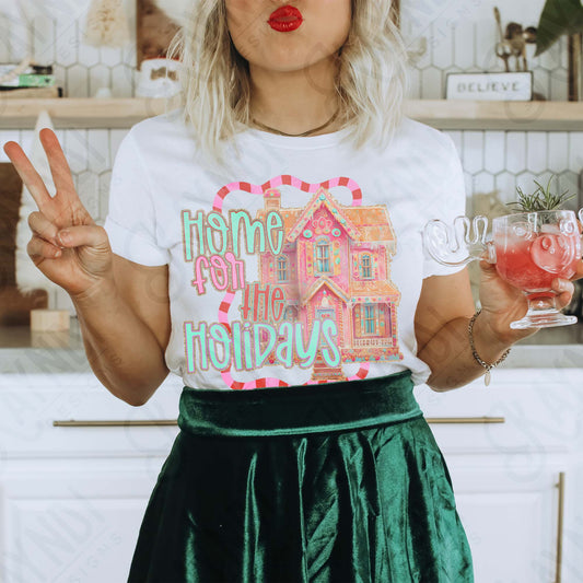 Home for the Holidays Sublimation Design PNG Digital Download Pink Christmas House Festive