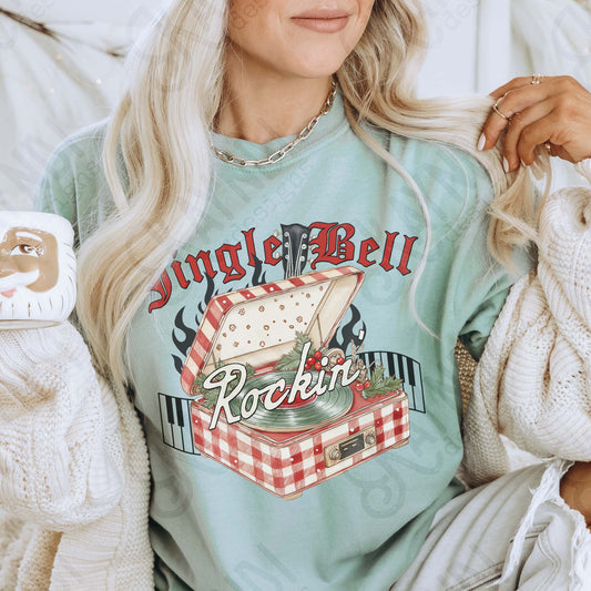 Jingle Bell Rockin Sublimation Design PNG Digital Download Christmas Record Player Music