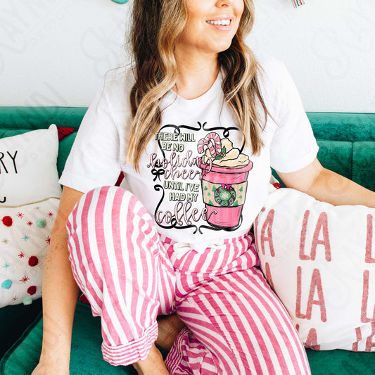 No Holiday Cheer Until I've Had My Coffee Sublimation Design PNG Digital Download Christmas Pink Espresso